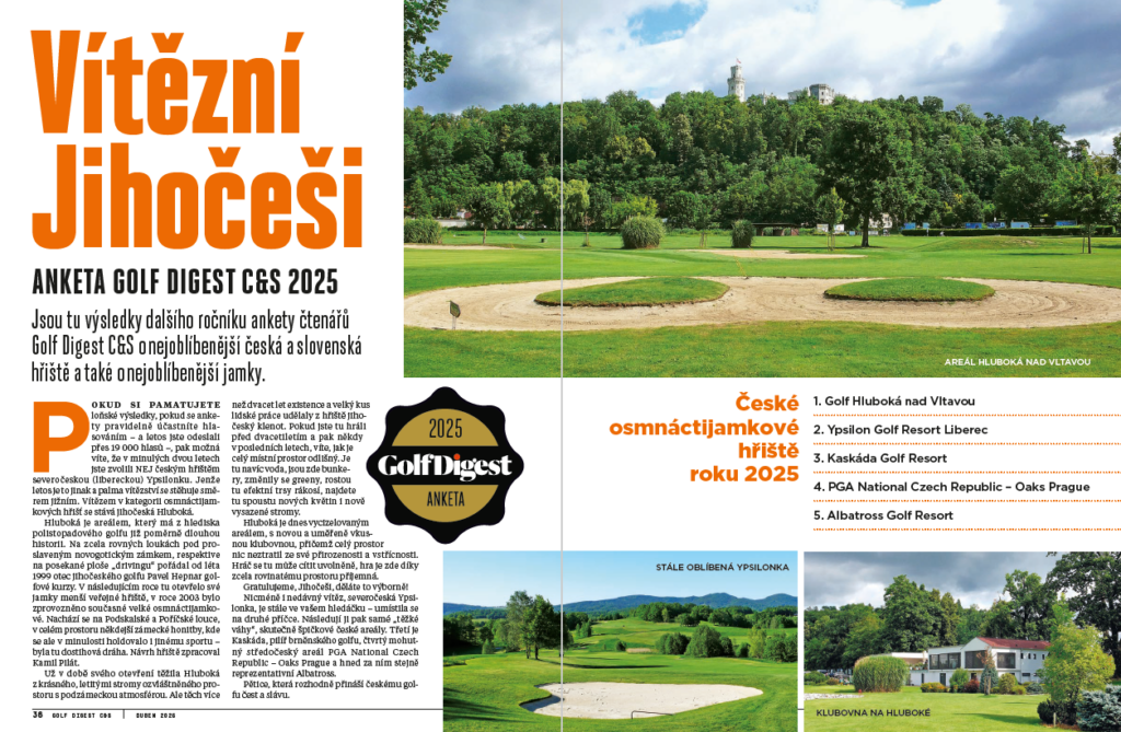 Vedle těchto dvou unikátních a pozoruhodných materiálů nabízí dubnové vydání Golf Digest C&S také výsledky ankety našeho časopisu o české i slovenské hřiště roku 2025 a českou a slovenskou jamku roku 2025. Rovnou prozradíme: Vyhráli Jihočeši! Ale Severočeši jim pořádně dýchají na paty.